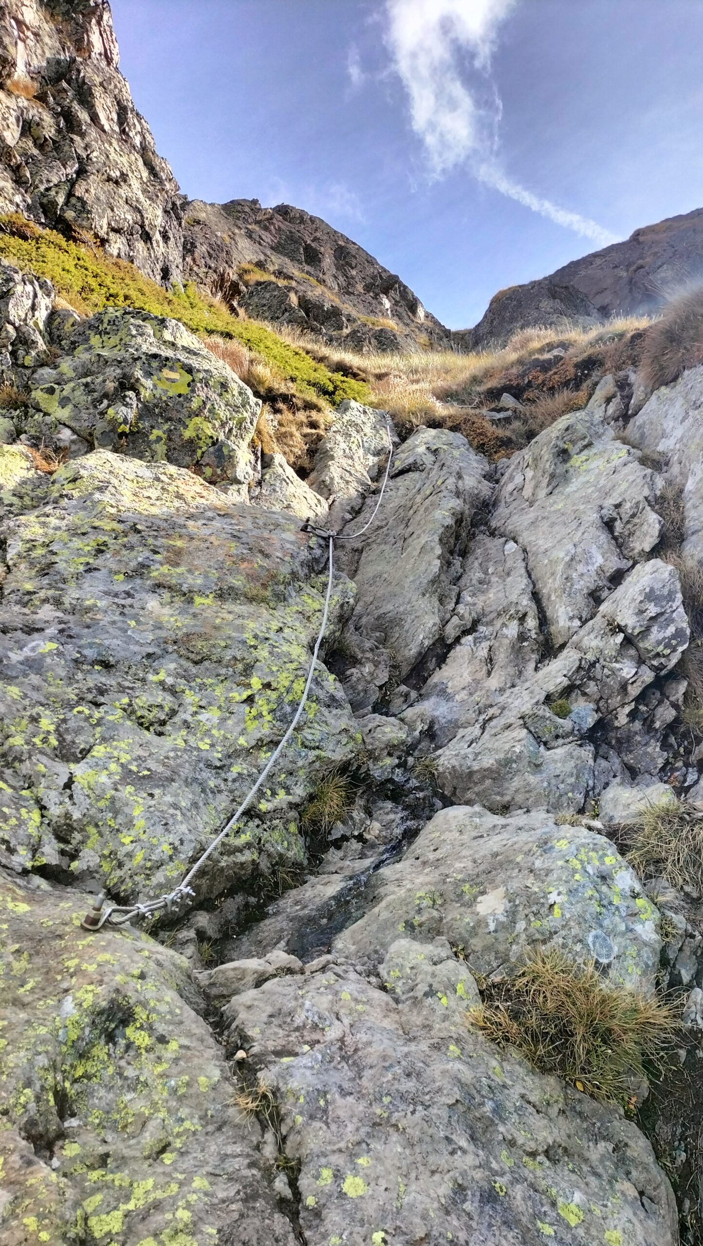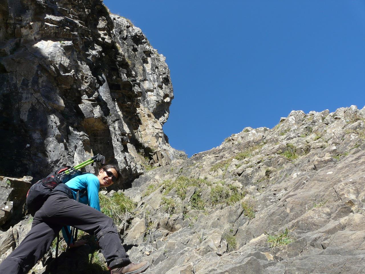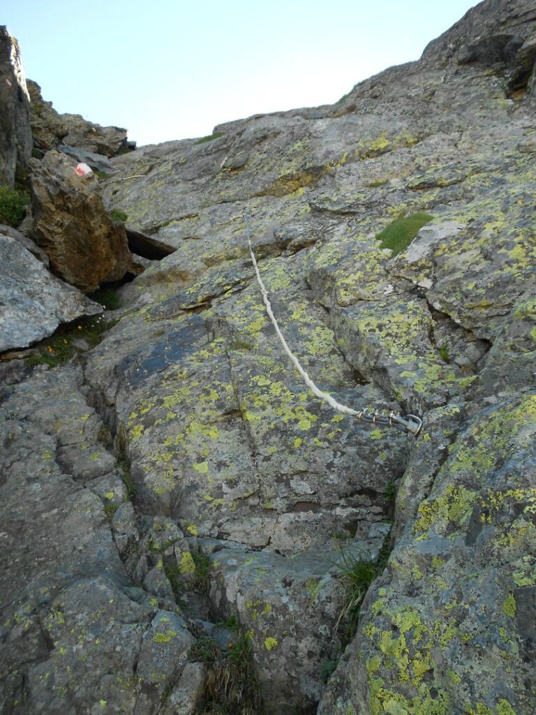 Le passage peut paraître plus impressionnant à la descente, en raison de son caractère aérien, mais il ne présente pas de difficulté technique. Quelques appuis de mains peuvent toutefois être nécessaires selon l’aisance de chacun. Passage délicat si le rocher est mouillé et par temps de brouillard.