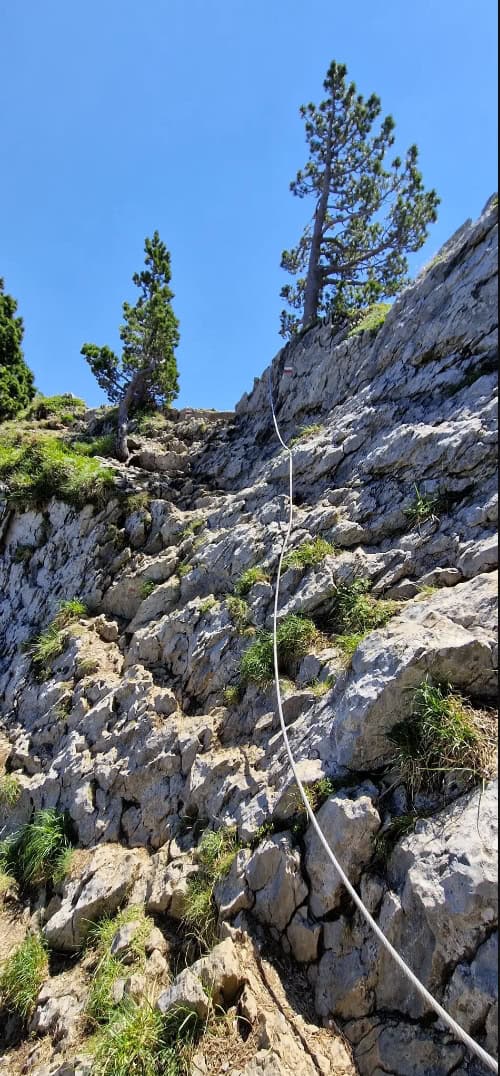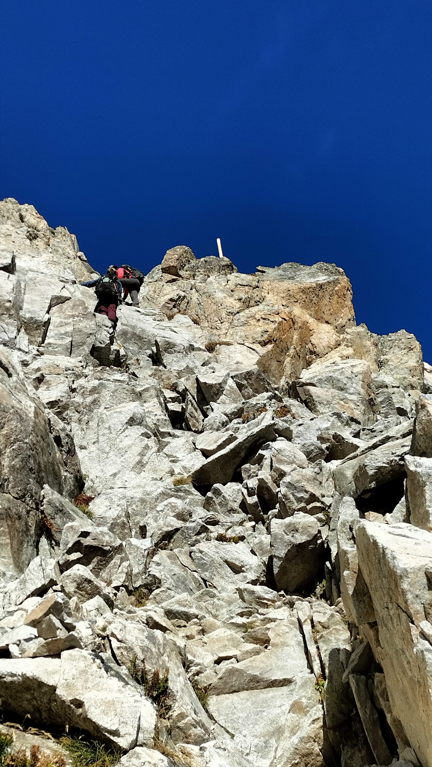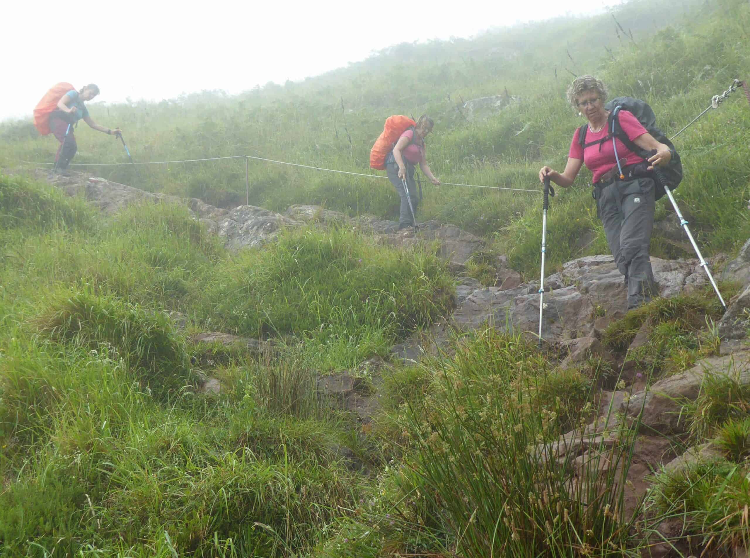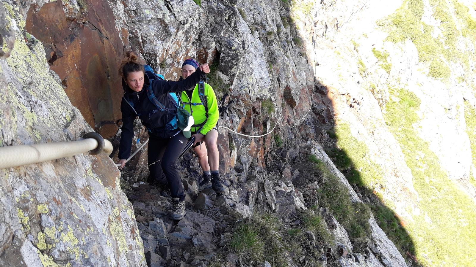 Le passage peut paraître plus impressionnant à la descente, en raison de son caractère aérien, mais il ne présente pas de difficulté technique. Quelques appuis de mains peuvent toutefois être nécessaires selon l’aisance de chacun. Passage délicat si le rocher est mouillé et par temps de brouillard.