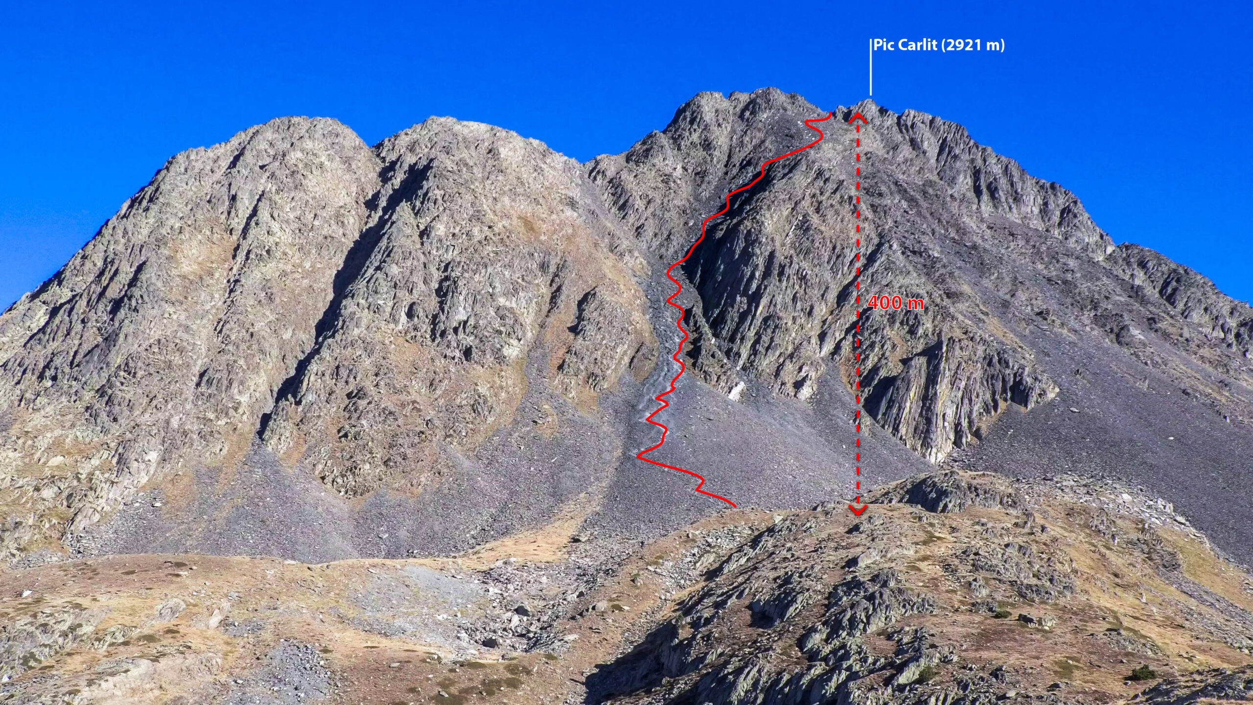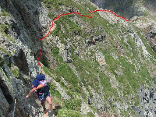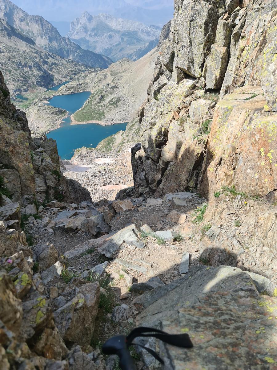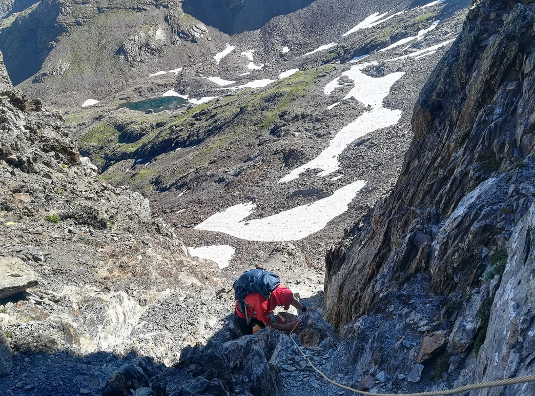 Le collado de Piedrafita franchit une pente très raide sur terrain instable et fuyant. La progression demande un pied sûr et une vigilance constante, surtout à la descente. Par temps humide ou avec névés, le passage devient plus délicat et exige une bonne lecture du terrain. photos, lien 1 et photo Frederic Monmany