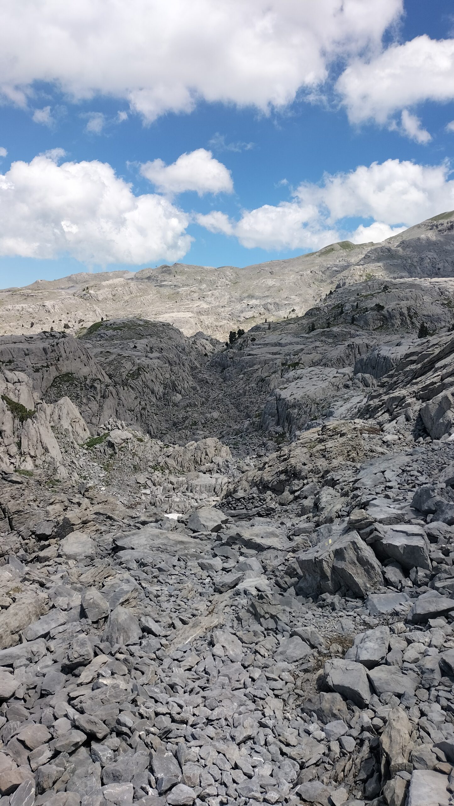 Cette zone est composée de lapiaz, très minérale, cheminement peu marqué, quelques passages faciles avec les mains, particulièrement délicat par temps de brouillard.